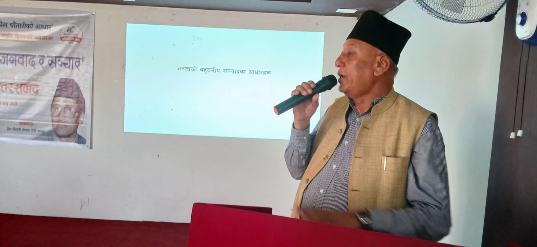 कार्यक्रममा ” जनताको बहुदलीय जनवाद र सञ्चार” विषयमा पत्रकार डिल्ली वि सी ले कार्यपत्र प्रस्तुत गरेका थिए। कार्यक्रमका प्रमुख अतिथि प्रेस चाैतारीका इन्चार्ज , नेकपा एमाले स्थायी समिति सदस्य तथा प्रचार विभाग प्रमुख राजेन्द्र गाैतमले जनताकाे वहुदलिय जनवादकाे विषयमा प्रशिक्षणात्मक मन्तव्य राखेका थिए ।